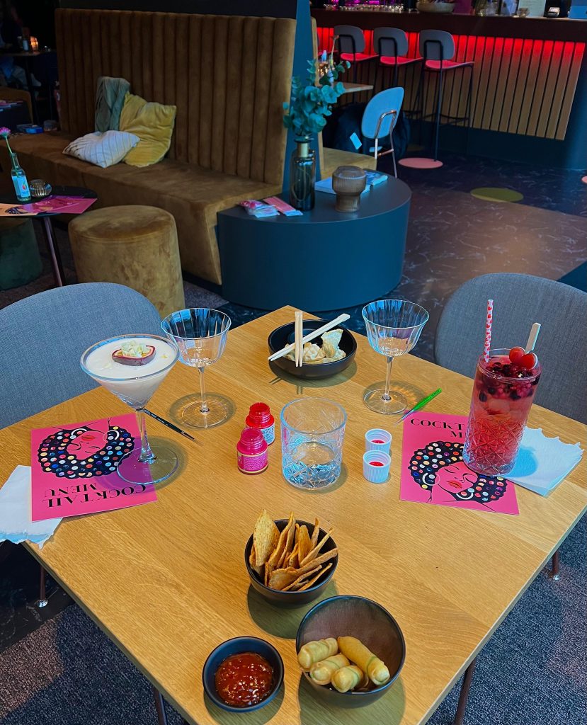 Welcome drink | 2 cocktails | bites | wine glass | paint supplies